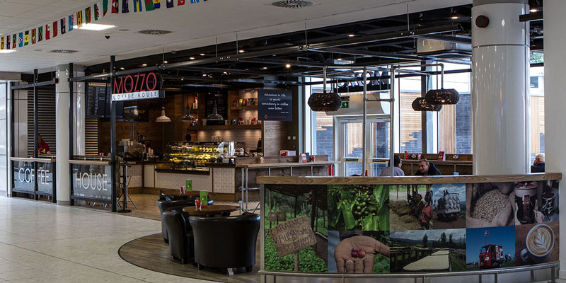 The new Mozzo Café is located in the arrivals lounge at Glasgow Airport and is perfect for those dropping in for refreshments while they enjoy the sensational sight of the iconic supersonic jet or watching the constant flow of planes taking off and landing. Roomfood carefully selected, supplied and installed an industrial inspired palette of loose furniture.