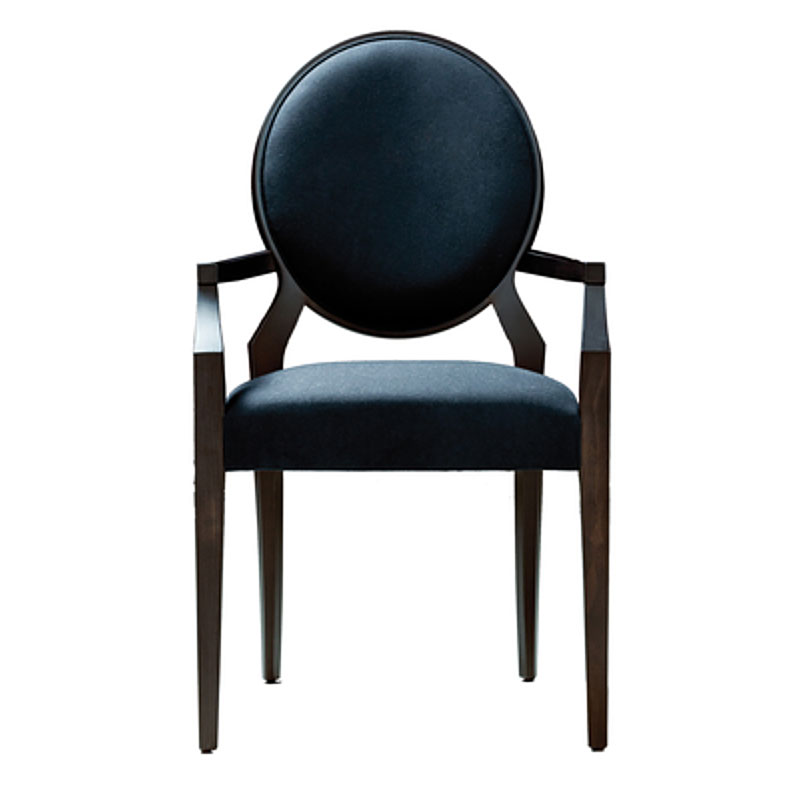 Elegant soft seating family comprising chair and armchair. Available in solid European beech. Wide variety of combinations of materials, cover colours. Natural stained beech finish with a modern supporting upholstered frame.